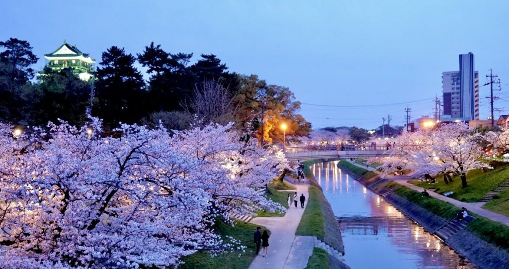 桜まつり自体が、岡崎城公園、伊賀川、乙川と見どころが分散しているのが特徴です。桜だけを見るなら伊賀川、岡崎城との写真を狙うなら公園内、回遊しながら雰囲気を楽しむなら乙川沿いが相性がいいと思います。